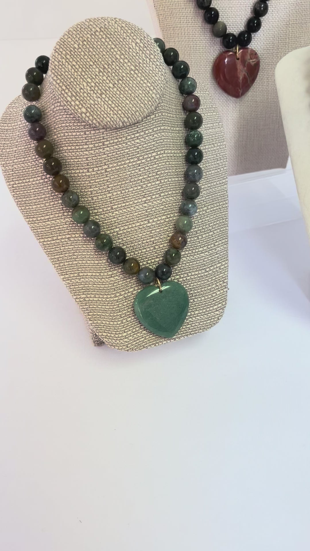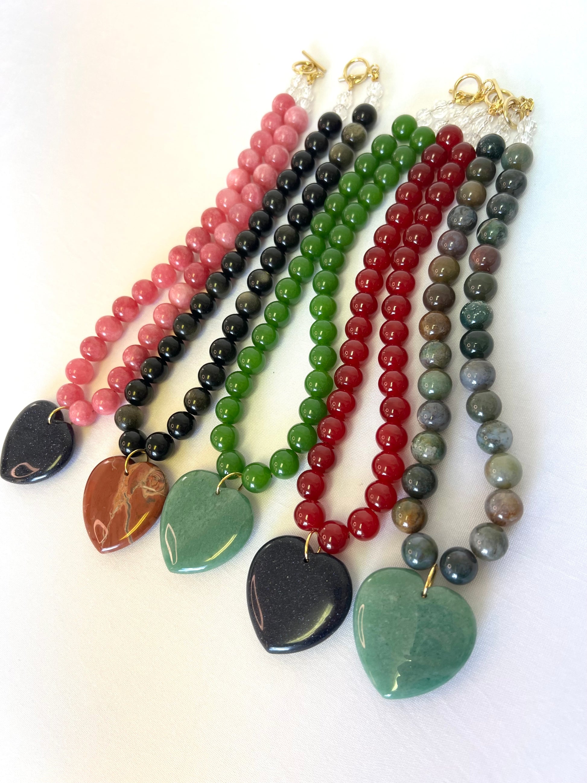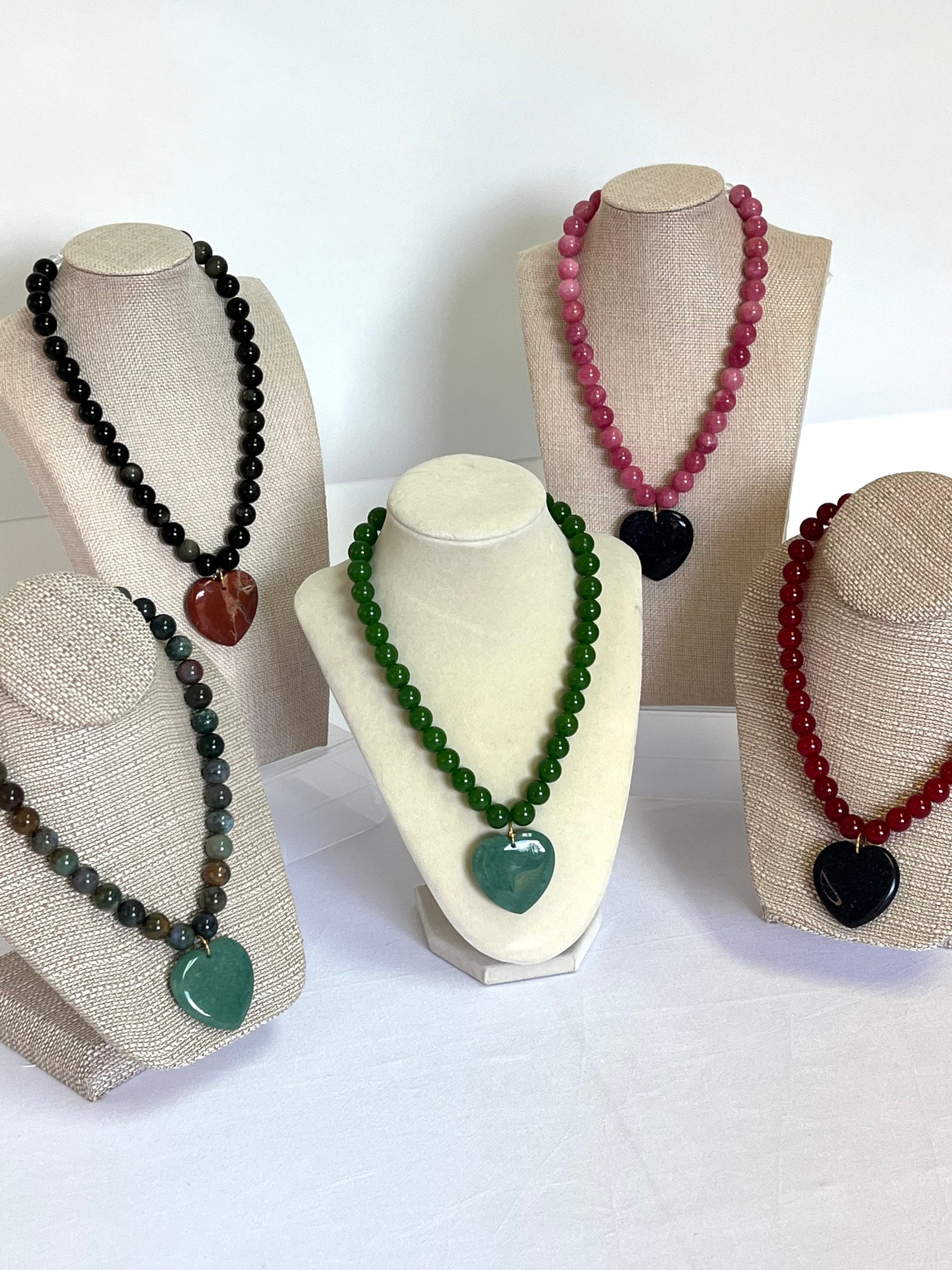 Green Beaded Necklace+Green Heart Pendant